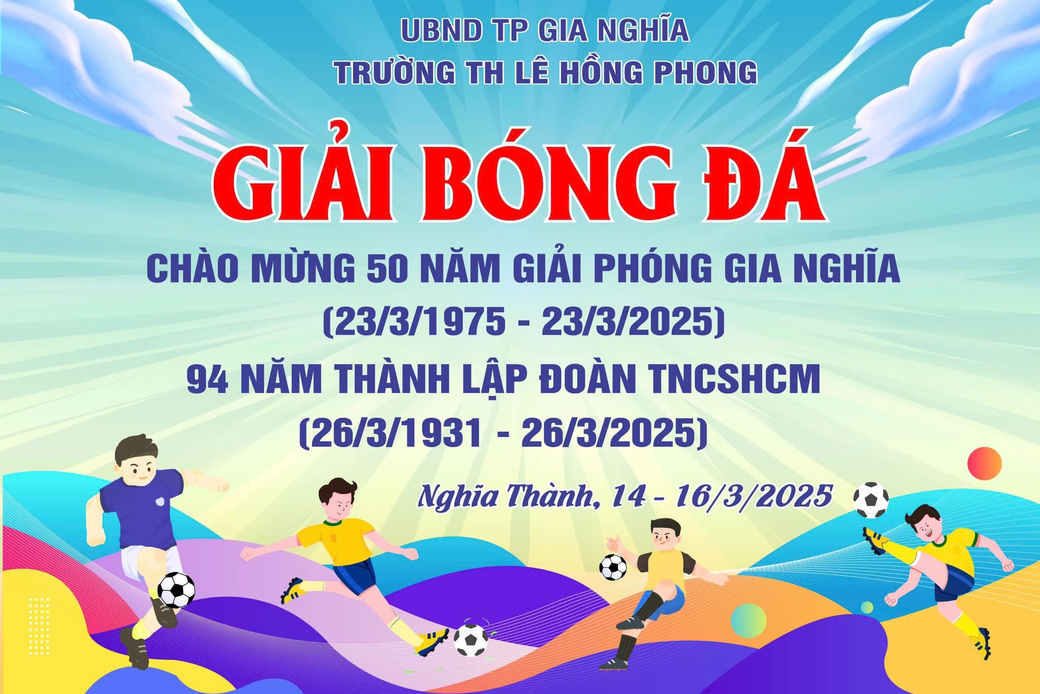 Nhằm lập thành tích chào mừng 50 năm giải phóng Gia Nghĩa (23/3/1975 – 23/3/2025); 94 năm ngày thành lập đoàn Thanh niên cộng sản Hồ Chí Minh (26/3/1931 – 26/3/2025). Chào mừng đại hội Đảng bộ phường Nghĩa Thành lần thứ V, nhiệm kỳ 2025 – 2O3O tiến tới Đại hội Đảng các cấp. Trường Tiểu học Lê Hồng Phong tổ chức “Giải bóng đá mini” cho học sinh khối 3, 4, 5.