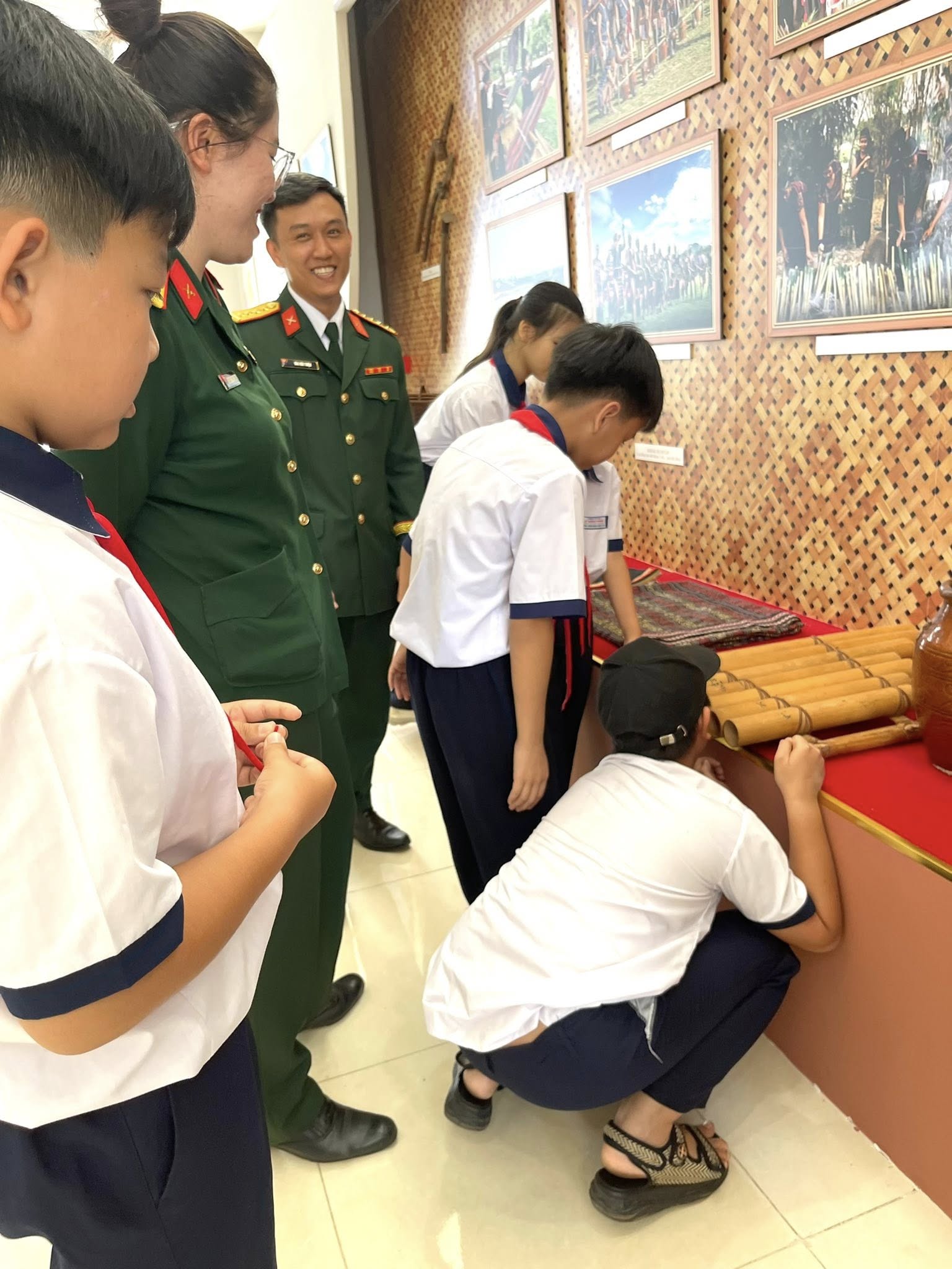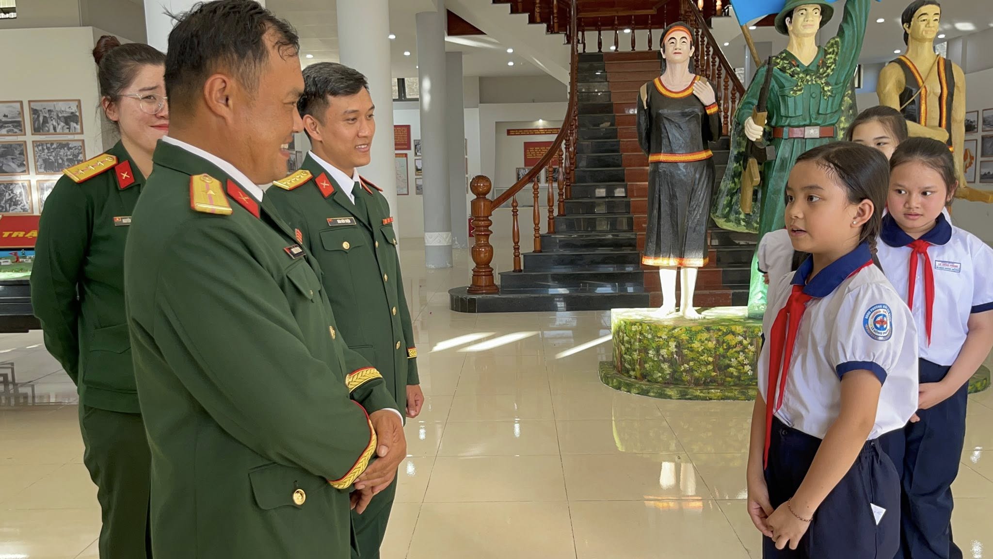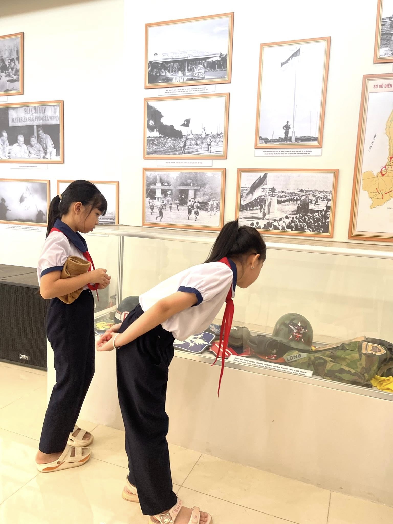 Tại Ban chỉ huy phòng thủ khu vực 2, các bạn đội viên, nhi đồng vô cùng hào hứng và súc động khi được tham quan Bảo tàng nơi lưu giữ những kỉ vật của dân tộc, của các chiến sĩ đã ngã xuống vì tổ quốc và được xem chiếu phim lịch sử.