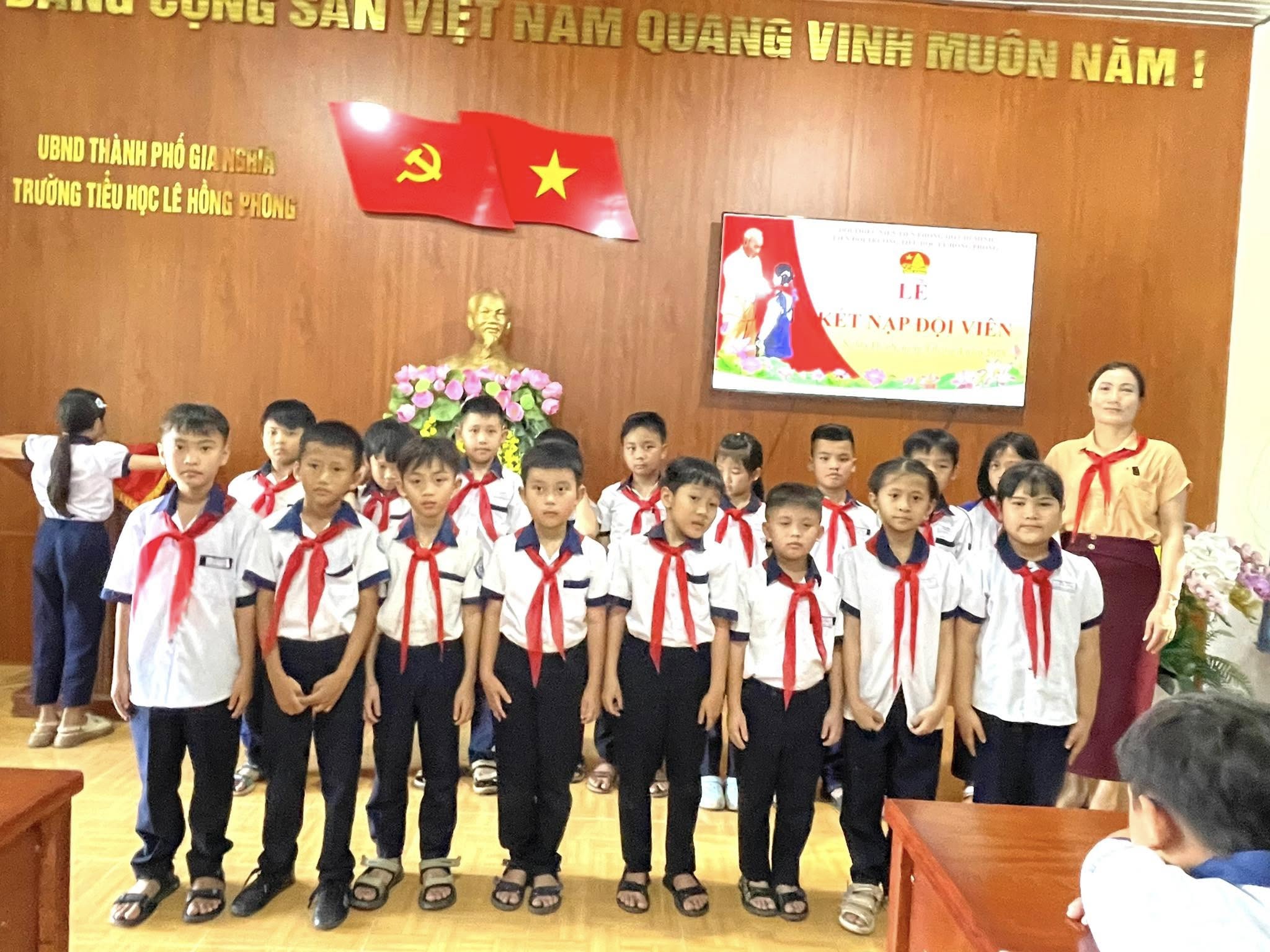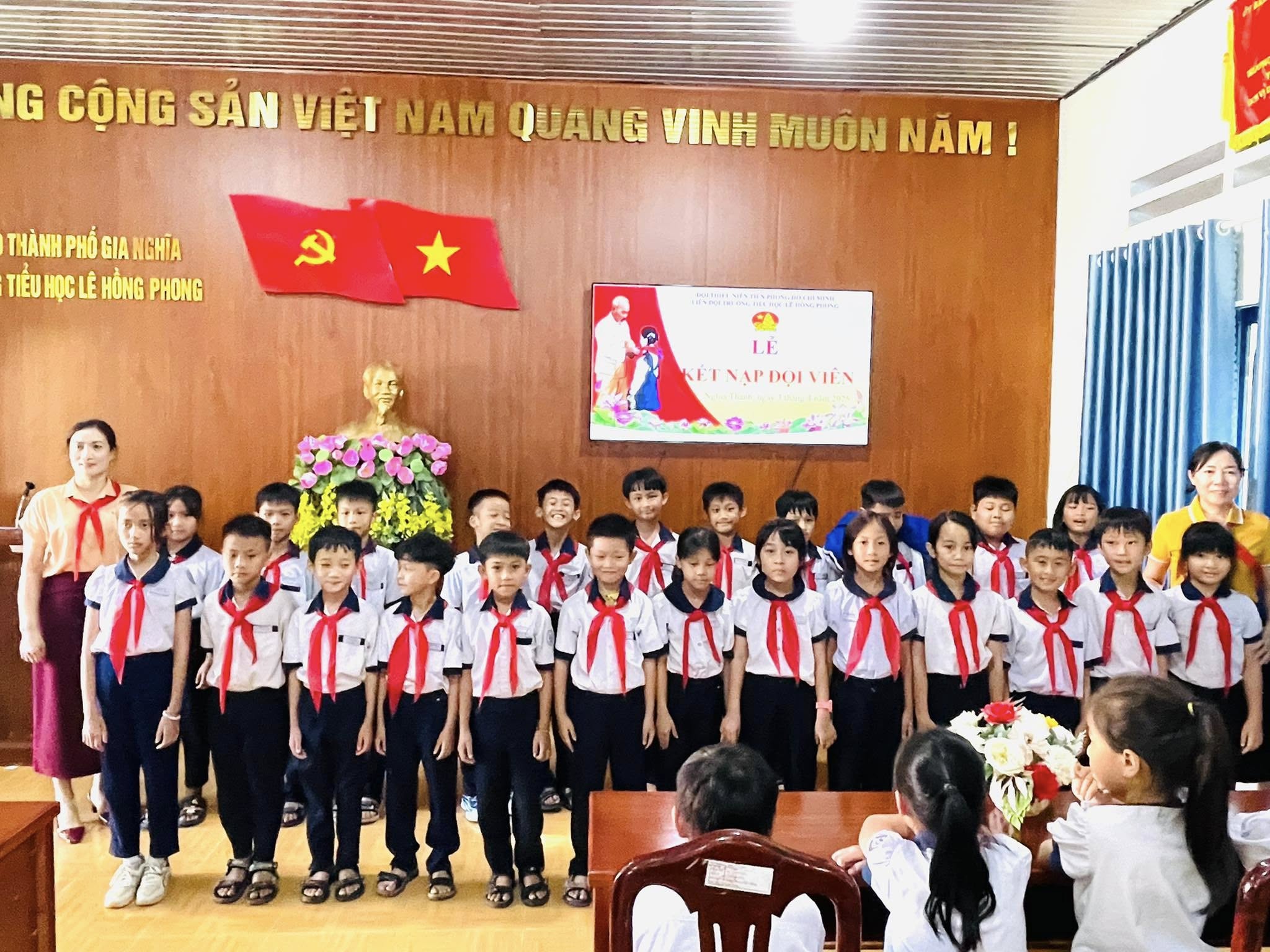 Thực hiện Chương trình công tác Đội và phong trào thiếu nhi năm học 2024 – 2025, hướng tới kỷ niệm 50 năm ngày Giải phóng Miền Nam thống nhất đất nước (30/04/1975- 30/04/2025), 84 năm ngày thành lập Đội TNTP Hồ Chí Minh (15/05/1941-15/05/2025), 135 năm ngày sinh Chủ tịch Hồ Chí Minh vĩ đại (19/05/1890-19/05/2025). Liên đội trường Tiểu học Lê Hồng Phong đã long trọng tổ chức lễ kết nạp Đội viên đợt 2 cho 74 em Nhi đồng.