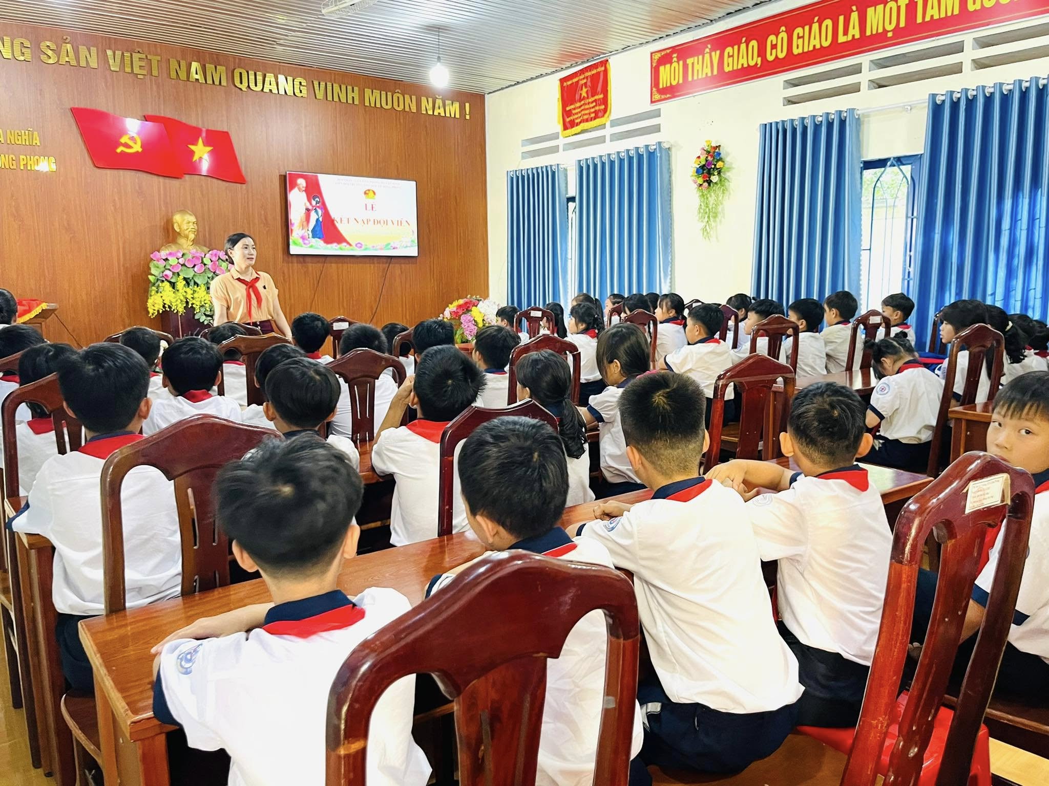 Các em được kết nạp Đội đợt này đều là những nhi đồng chăm ngoan, có thành tích học tập tốt và tích cực tham gia phong trào, hoạt động của nhà trường, qua quá trình rèn luyện dự bị đội viên, được Liên đội theo dõi và đã ghi nhận.