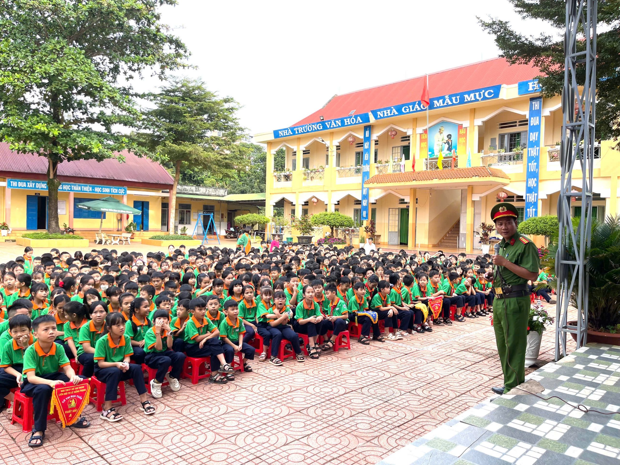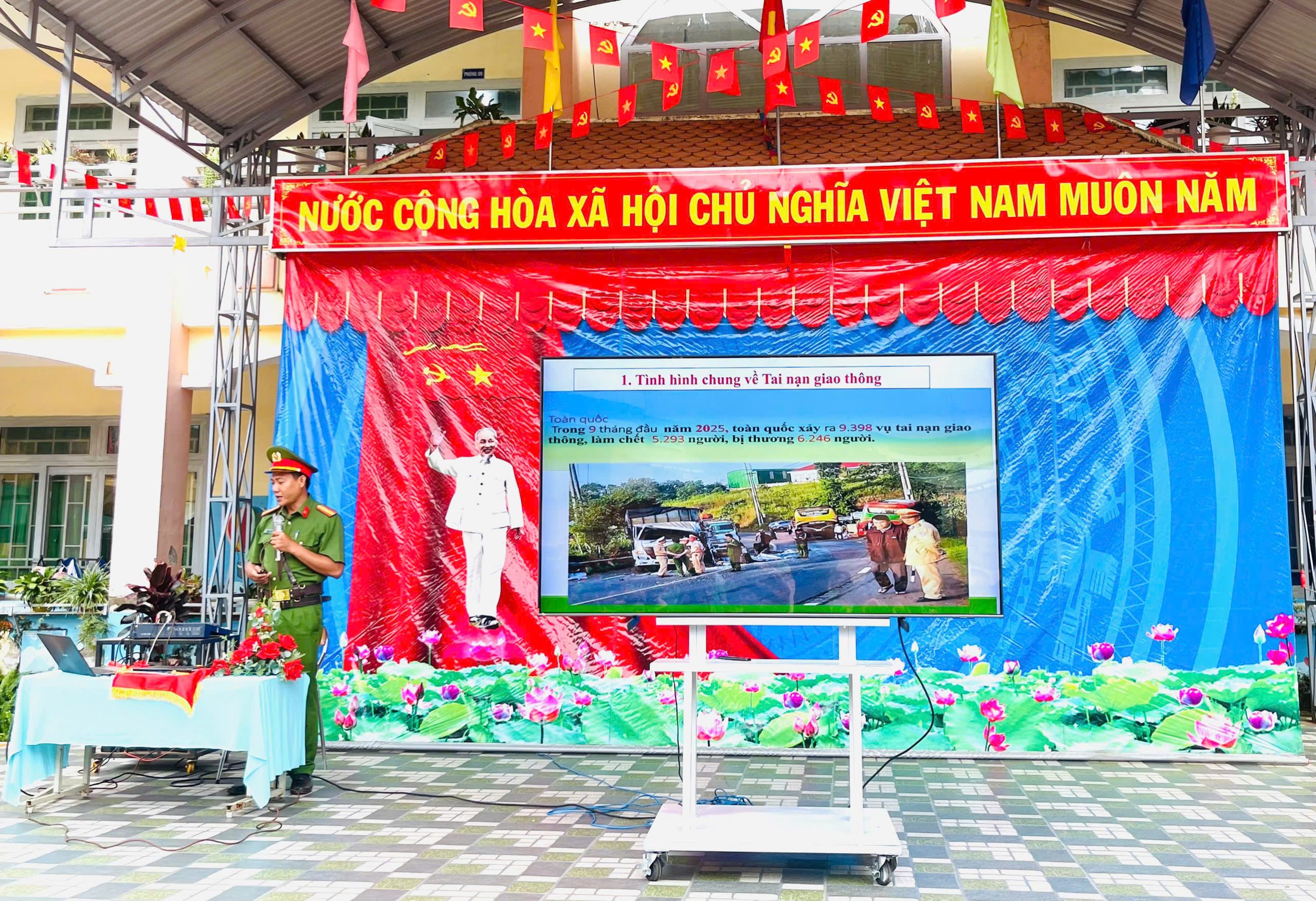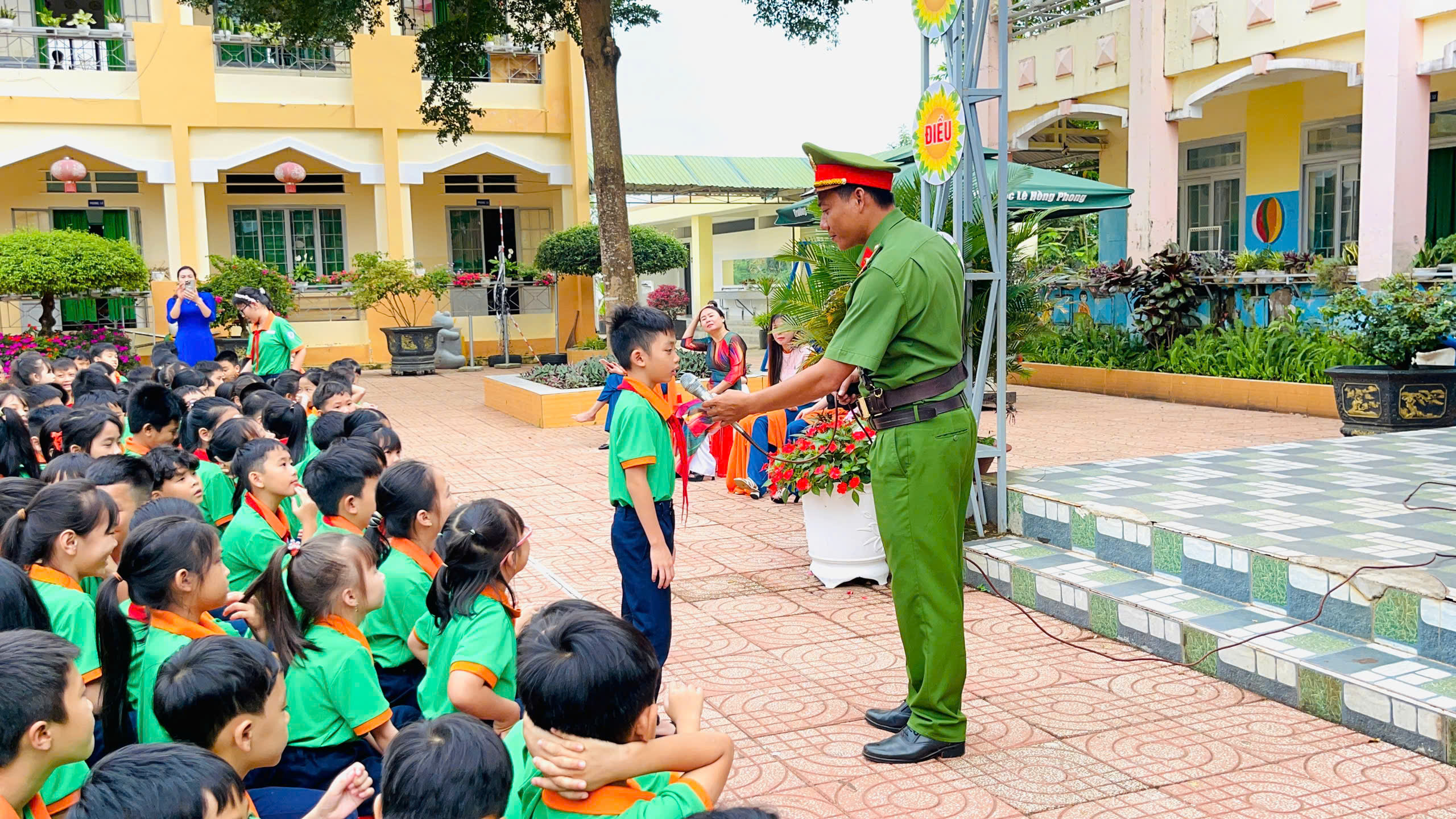 Sáng thứ 2, ngày 27/10/2025, trong giờ chào cờ đầu tuần, trường Tiểu học Lê Hồng Phong phối hợp với Công an phường Bắc Gia Nghĩa tổ chức tuyên truyền phổ biến pháp luật về trật tự an toàn giao thông, phòng chống đuối nước và an toàn thông tin trên không gian mạng.