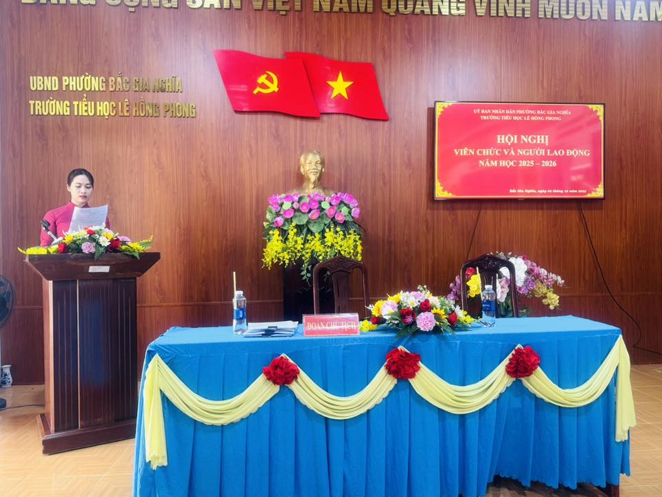 Chiều ngày 02/10/2025, trường tiểu học Lê Hồng Phong tổ chức thành công Hội nghị VC-NLĐ năm học 2025-2026.